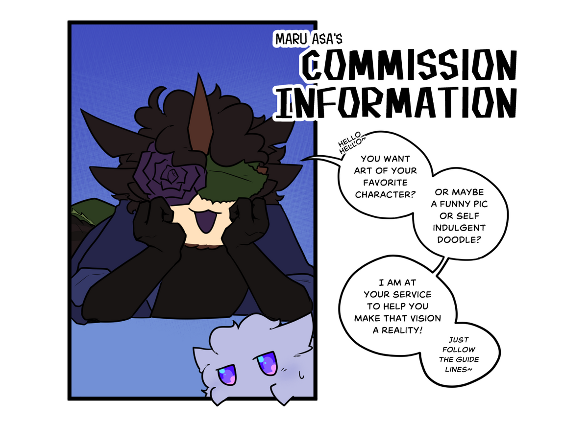✧ Payment full upfront.✧ I am in my right to turn down a request if I don't feel comfortable with it.✧ Requesting to imitate another style is not allowed.✧ Artworks provided are for personal use only.✧ Adding on to the previous point; the client is allowed to use the requested artwork as they please as long as proper credits are given and it's not for commercial use.✧ The client is allowed to request the piece to not be posted on social media. Otherwise I am in my right to use the artwork as promotional material.✧ Provide with as many references as you can or want for the piece! Whatever it'd be character designs, background, pose ideas. Anything to make your vision come true.